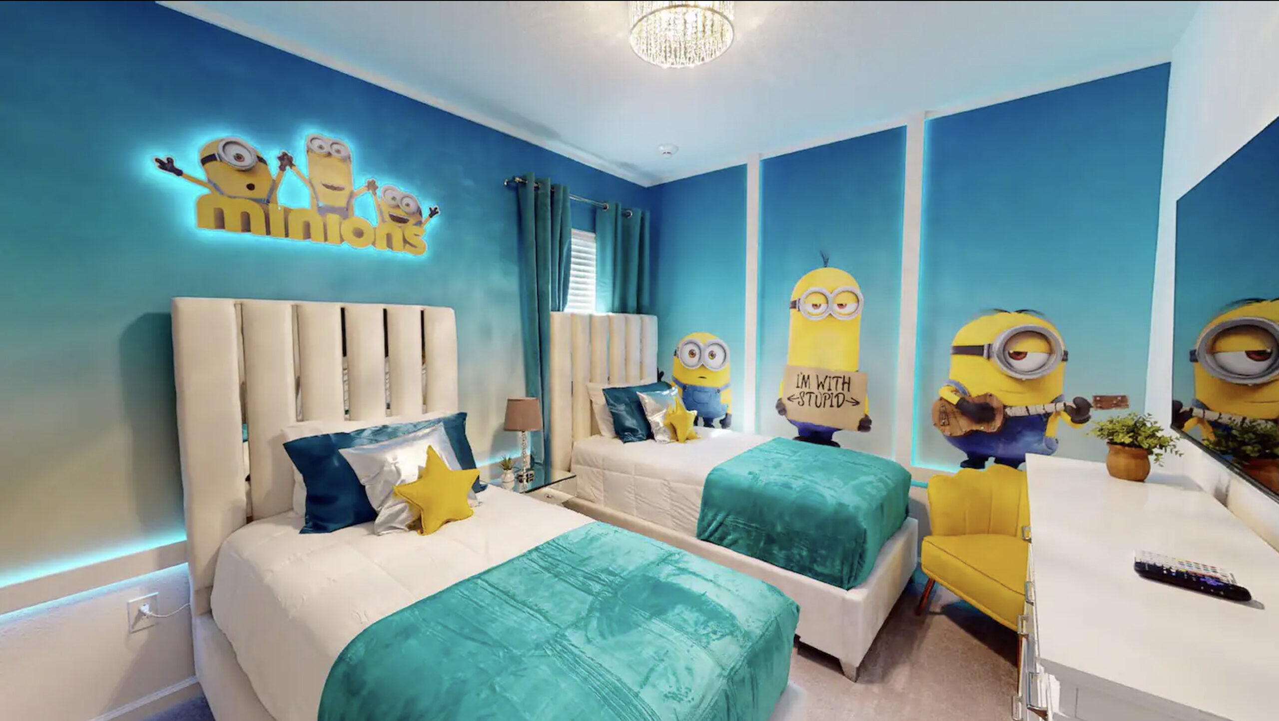 Bedroom 4 ( Minions ): 2 SINGLE BEDS + PRIVATE BATHROOM