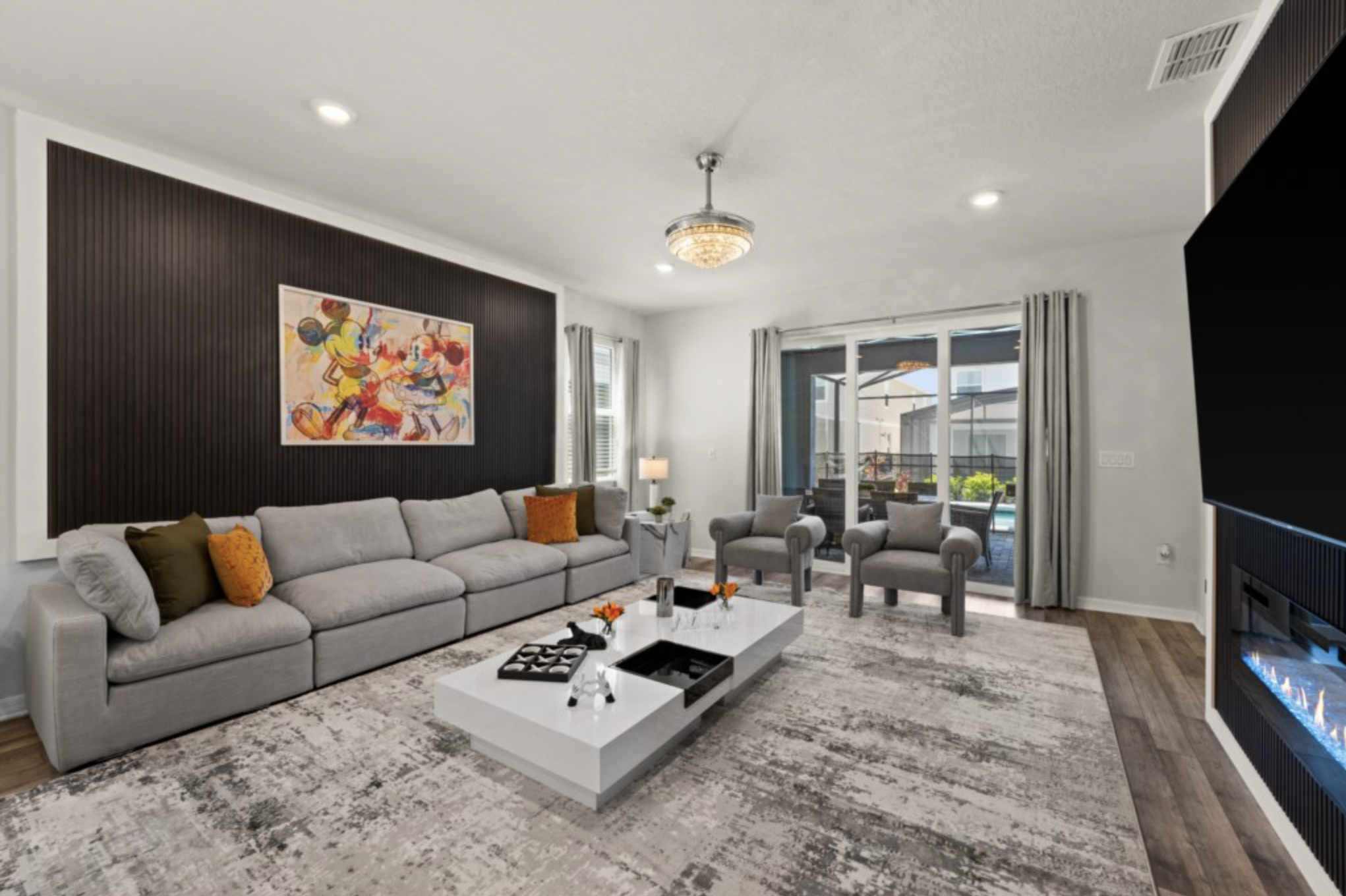 Spacious living room with 85” smart TV