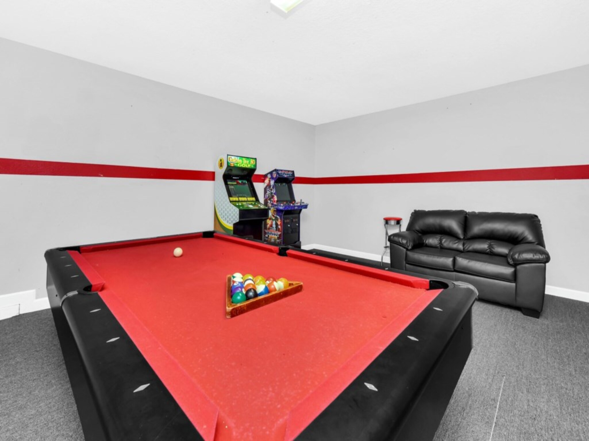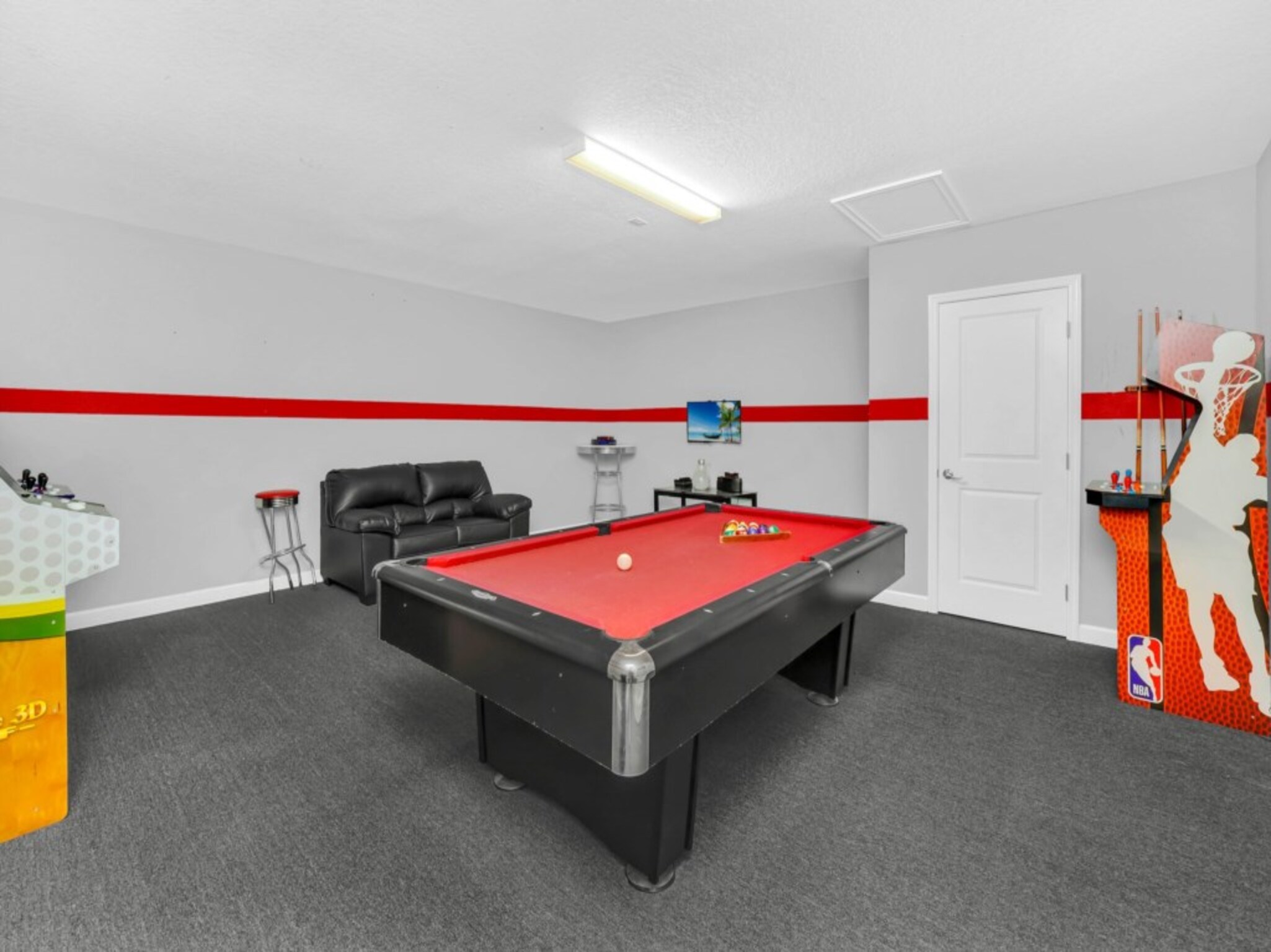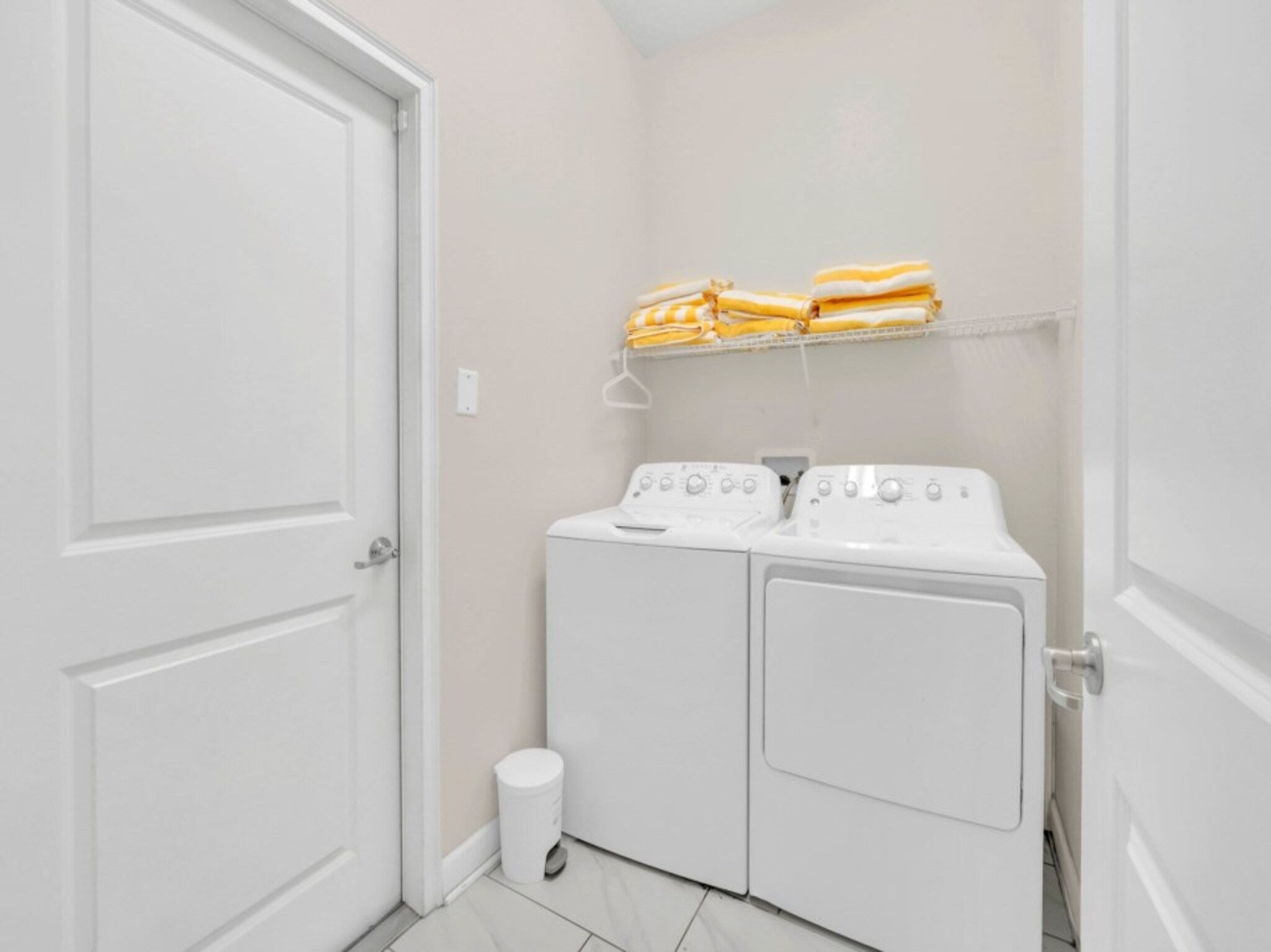 This large home provides plenty of entertainment for you and your guests and comes will full access to this community’s clubhouse. With a huge gym, pool with slides, and a lazy river, everyone will have the time of their lives! There is also an in-unit washer and dryer for your convenience. Book your stay today!