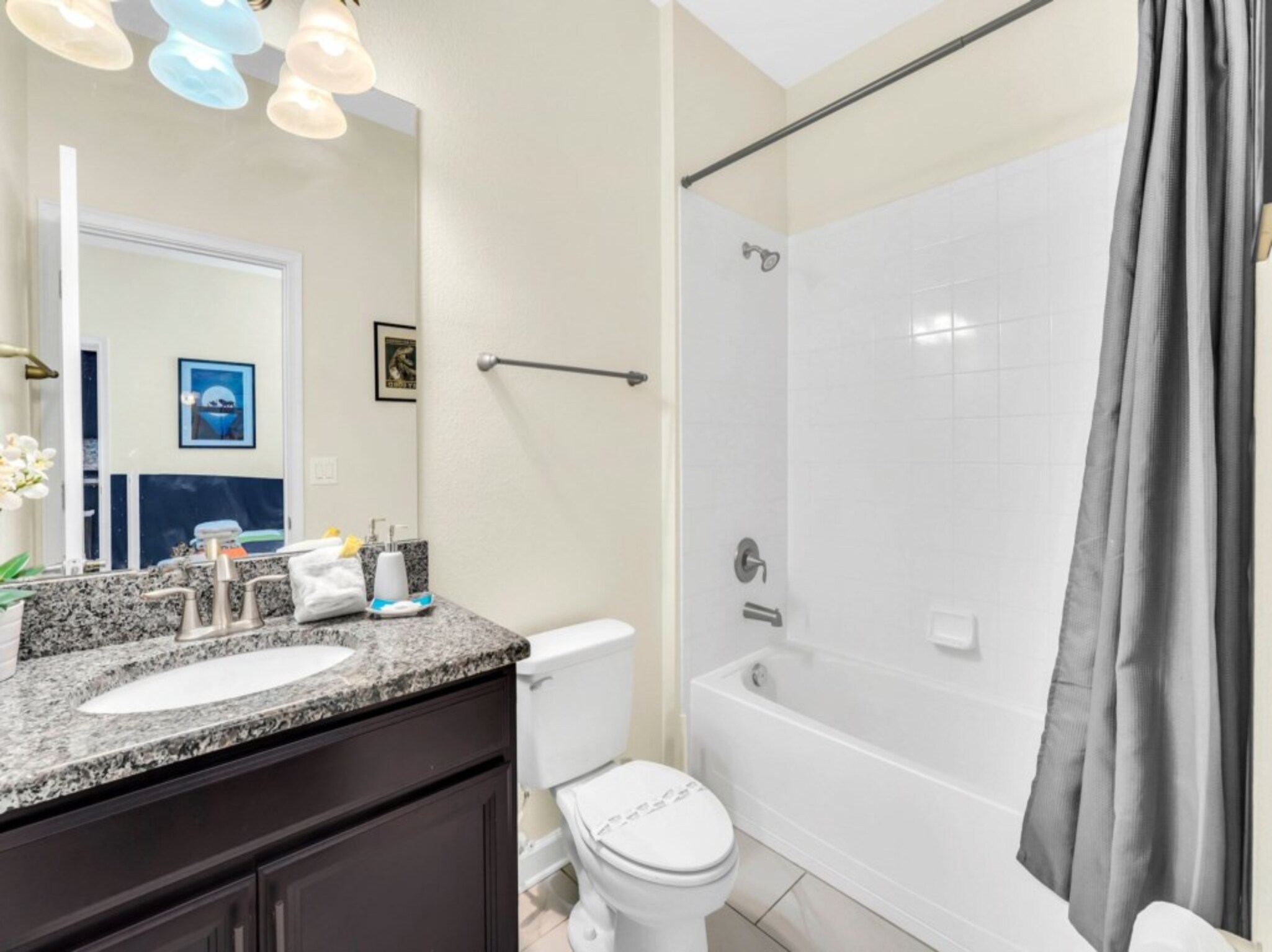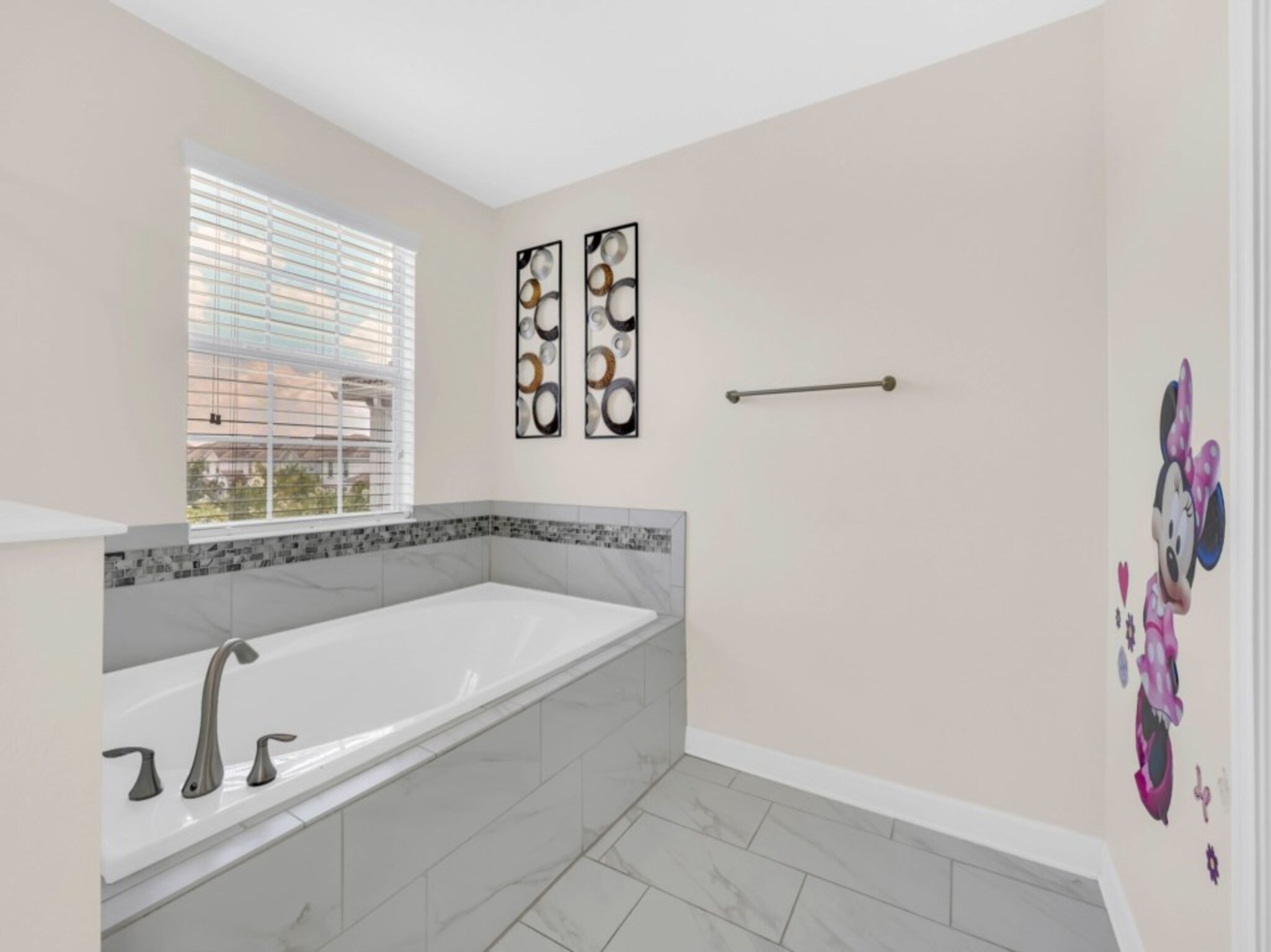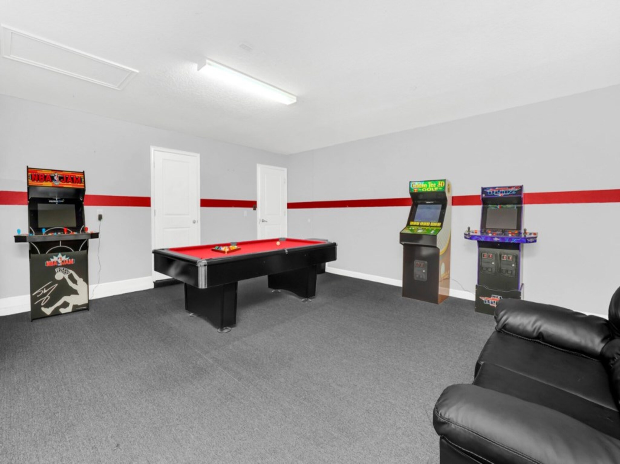 This large home provides plenty of entertainment for you and your guests and comes will full access to this community’s clubhouse. With a huge gym, pool with slides, and a lazy river, everyone will have the time of their lives! There is also an in-unit washer and dryer for your convenience. Book your stay today!