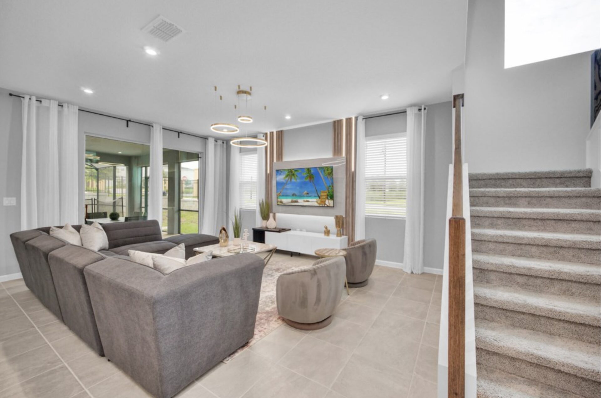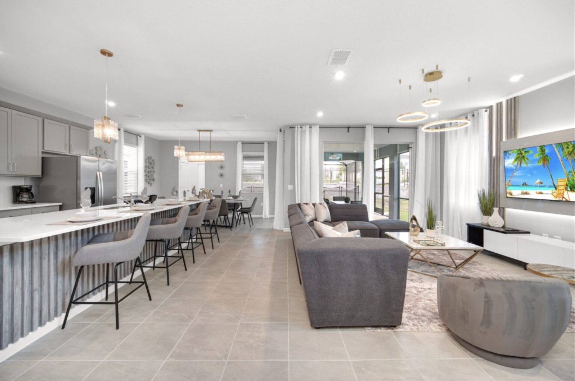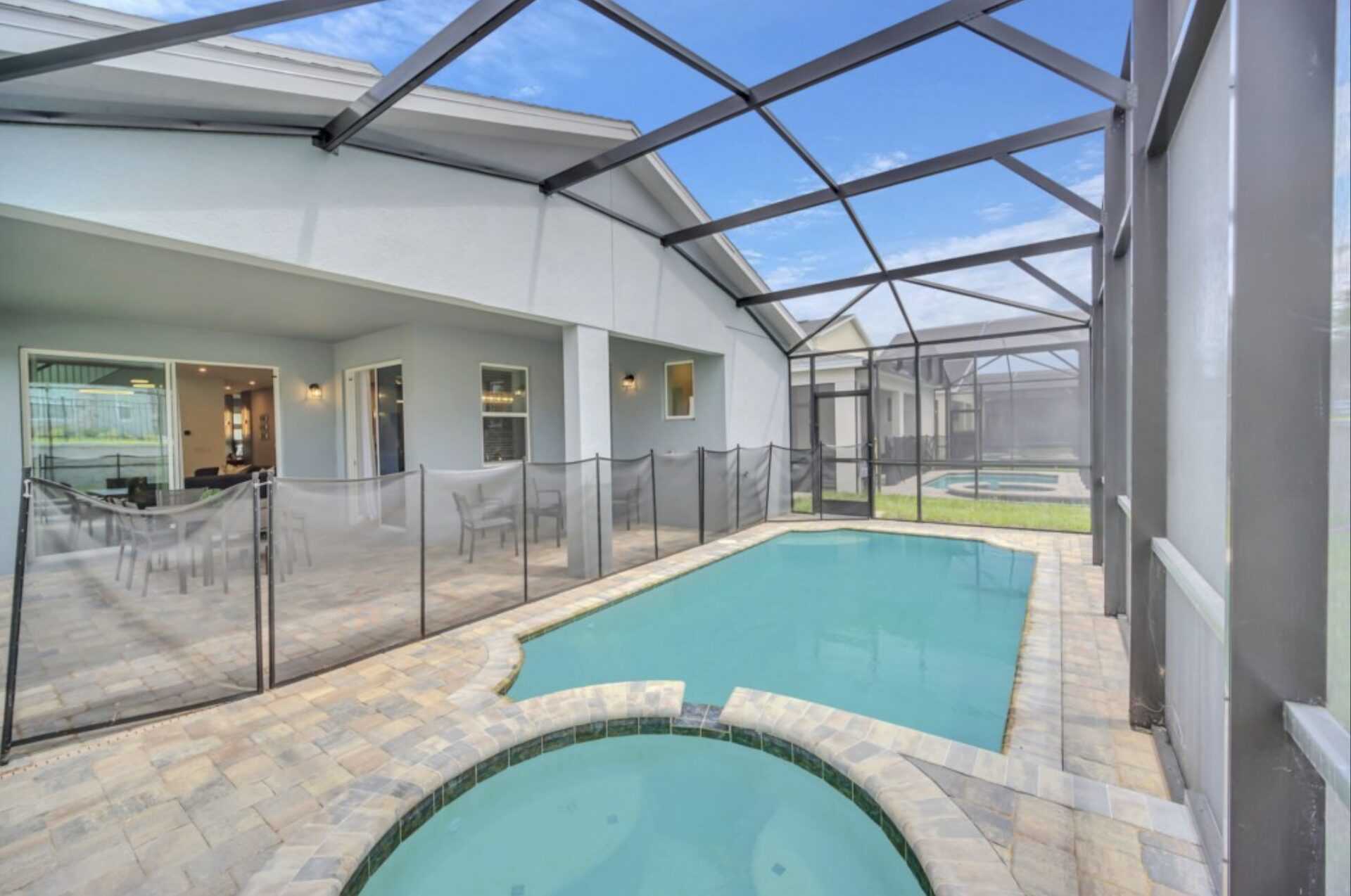 Florida Oasis vacation rental in Orlando impeccably and tastefully furnished residence seamlessly blends imagination with practicality. Your family is sure to cherish this expansive two-story Luxury house featuring a screened-in private pool and outdoor heated spa.