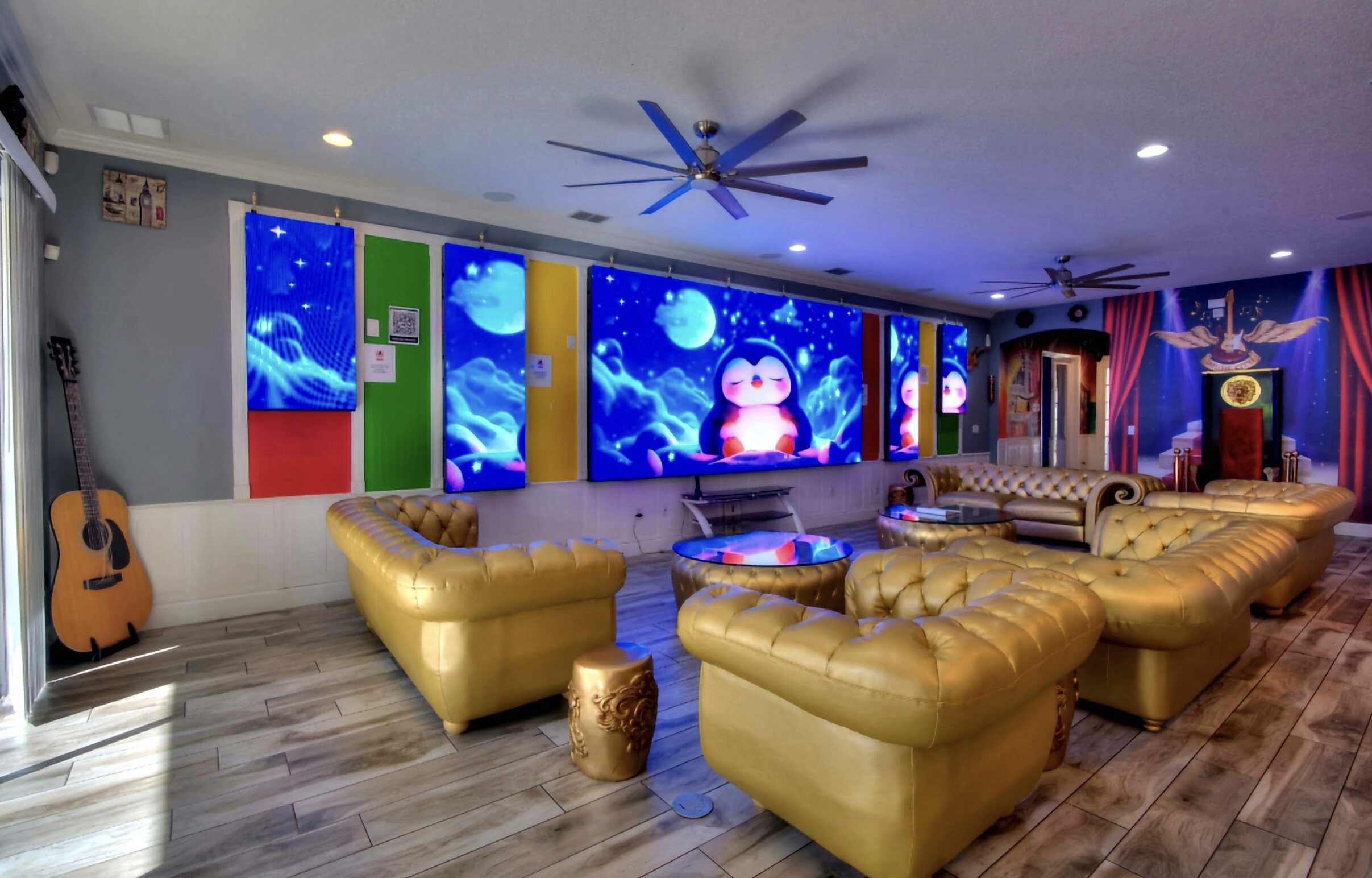 Featuring 14 plush bedrooms with Smart 4k TVs and cozy carpeted floors, including 12 king beds and 4 full-over-full bunks in the 2 kids’ rooms, our property comfortably accommodates large families and groups of up to 40 people.