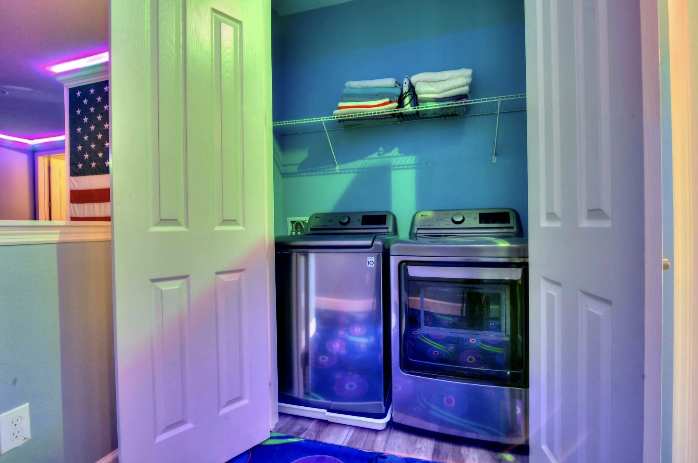 The open-concept living room space and massive Kitchen Island with additional chairs provide ample room for your group gatherings and shared meals. The fully equipped kitchen, including two refrigerators and two sets of full-sized washers and dryers, caters to even the most discerning chef. Complimentary Wi-Fi and internet access ensure you stay connected throughout your stay.