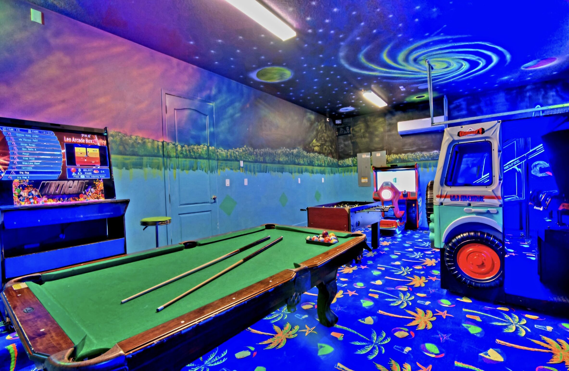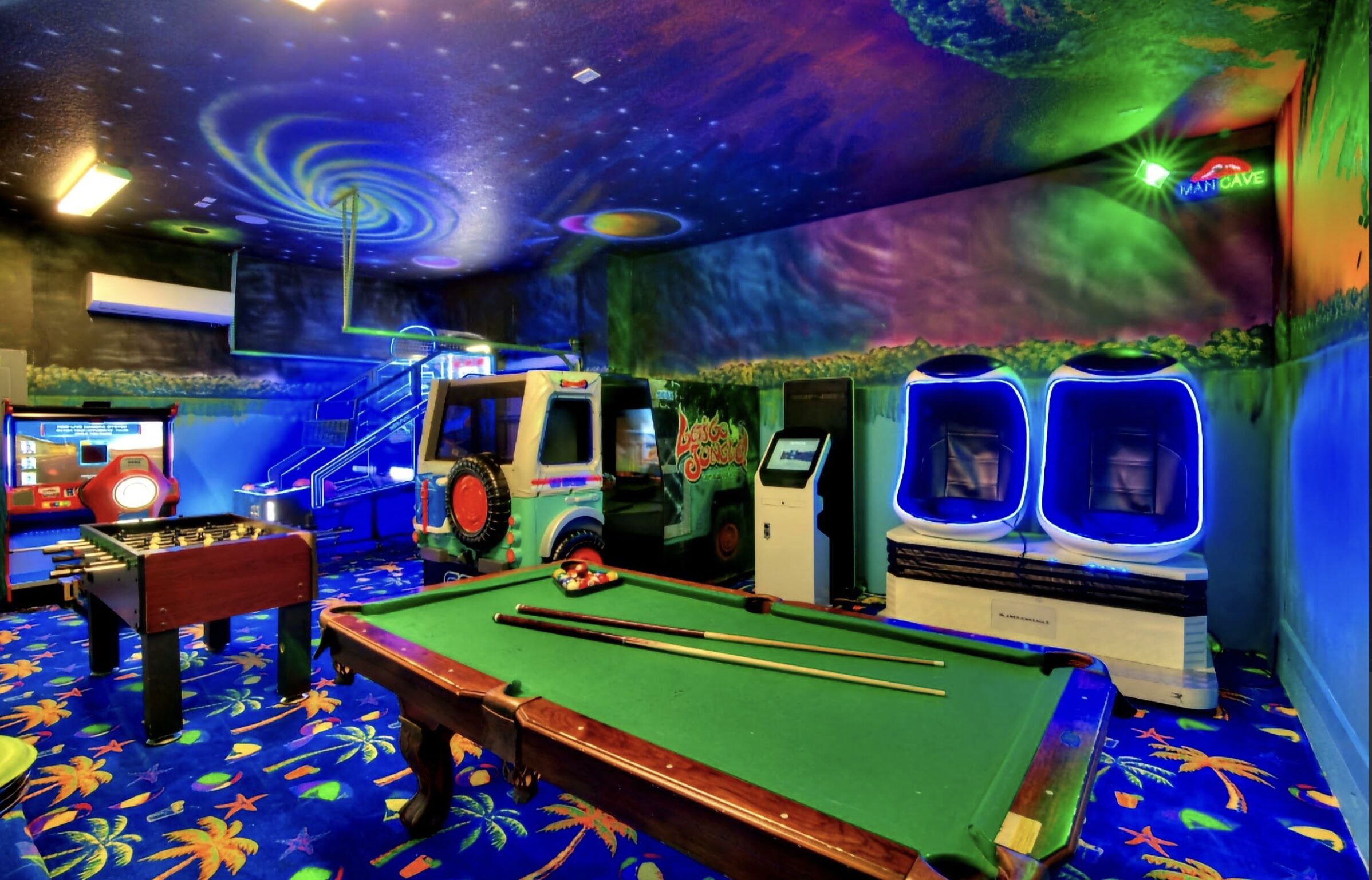 🎮 Game Room – Pool table, air hockey, arcade games, basketball hoops & more
