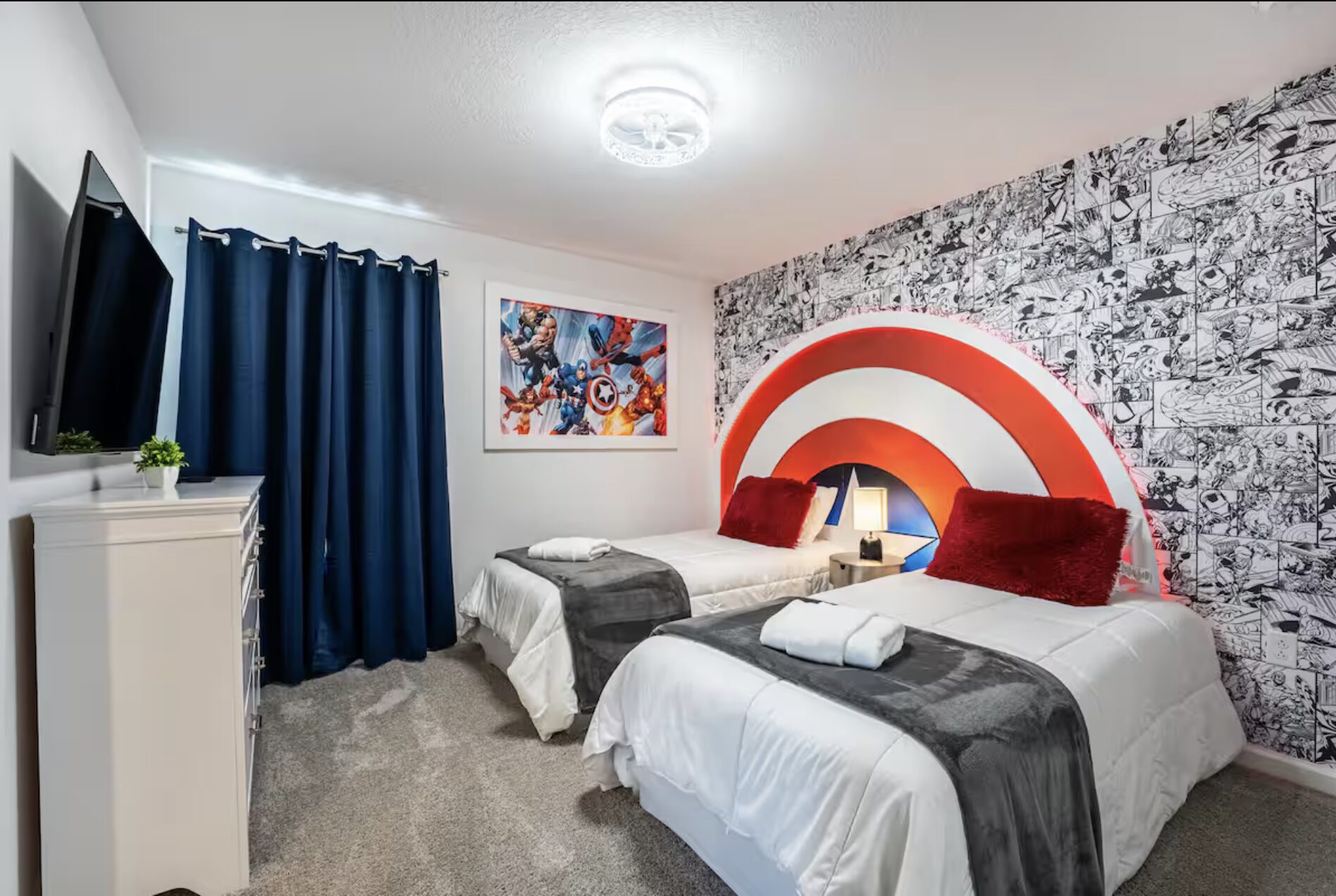 Bedroom 6 (Marvel Theme): 2 Twin Beds (Shared bathroom with Stitch Room)