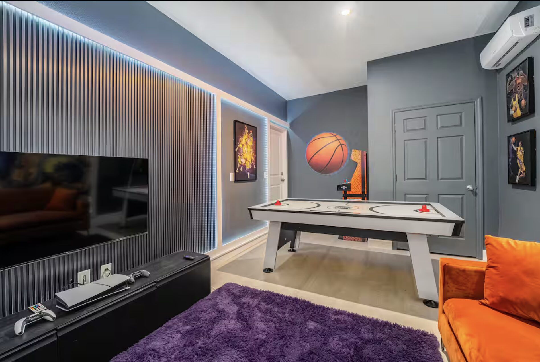 🏡 Key Features:✔️ Private Pool & Jacuzzi – Relax and unwind in your own oasis✔️ Entertainment Galore – Enjoy a fully equipped game room with an air hockey table, arcade, and PS5✔️ Fully Stocked Kitchen – Cook with ease using modern appliances✔️ Central Air Conditioning – Ensuring comfort year-round✔️ Smart TVs in Every Bedroom – Stay entertained at all times✔️ In-House Laundry – Washer, dryer, iron, and ironing board for added convenience