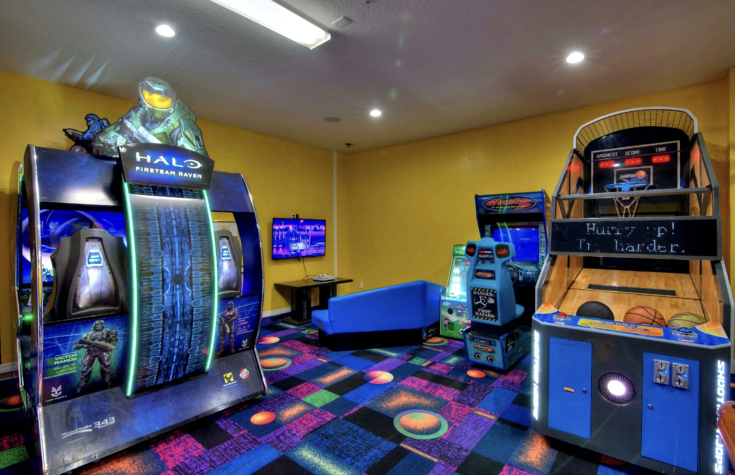 Other games include pool table, air hockey table, basketball hoops, happy soccer, hydro thunder, happy baby basketball, electronic piano.