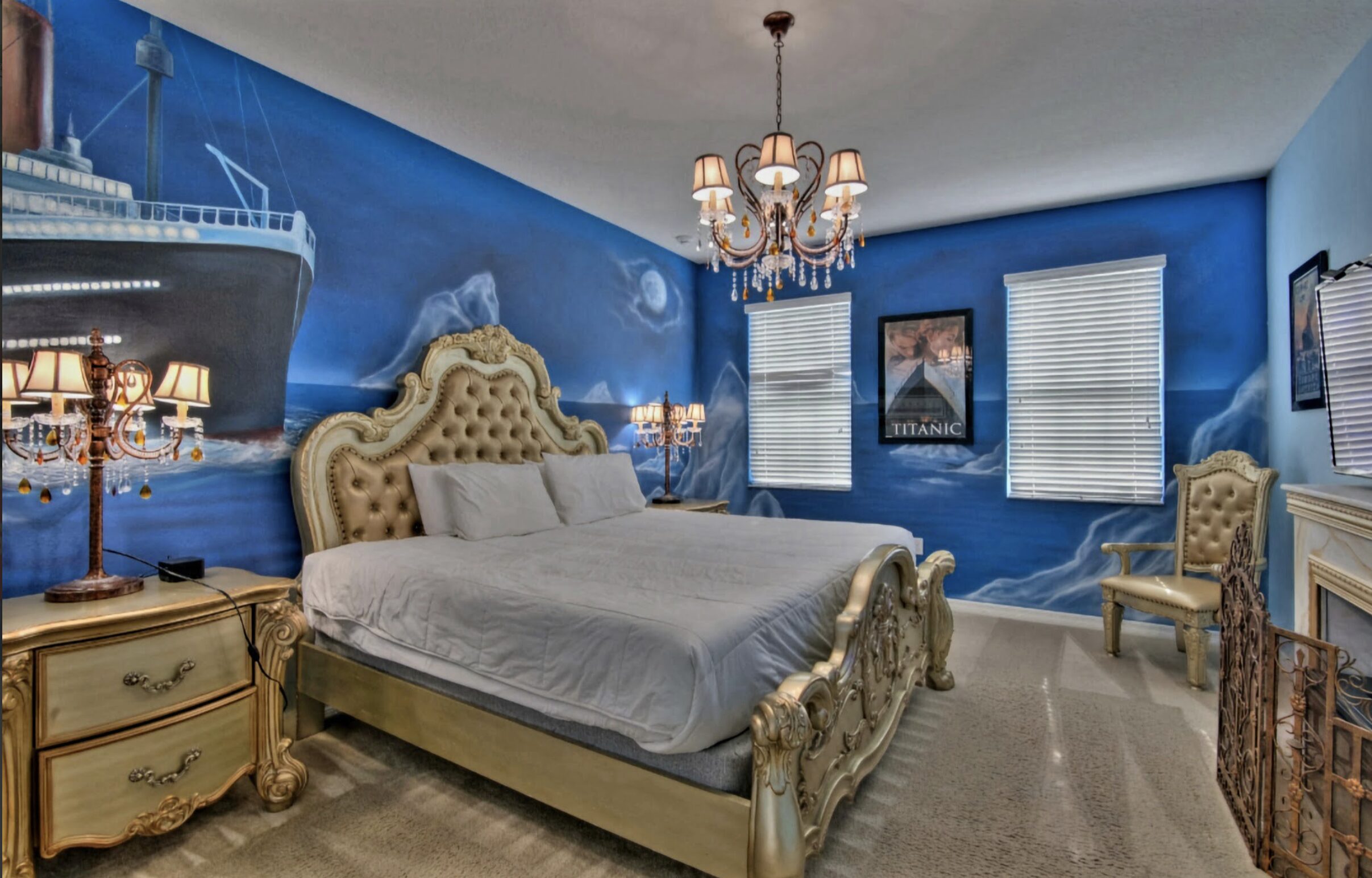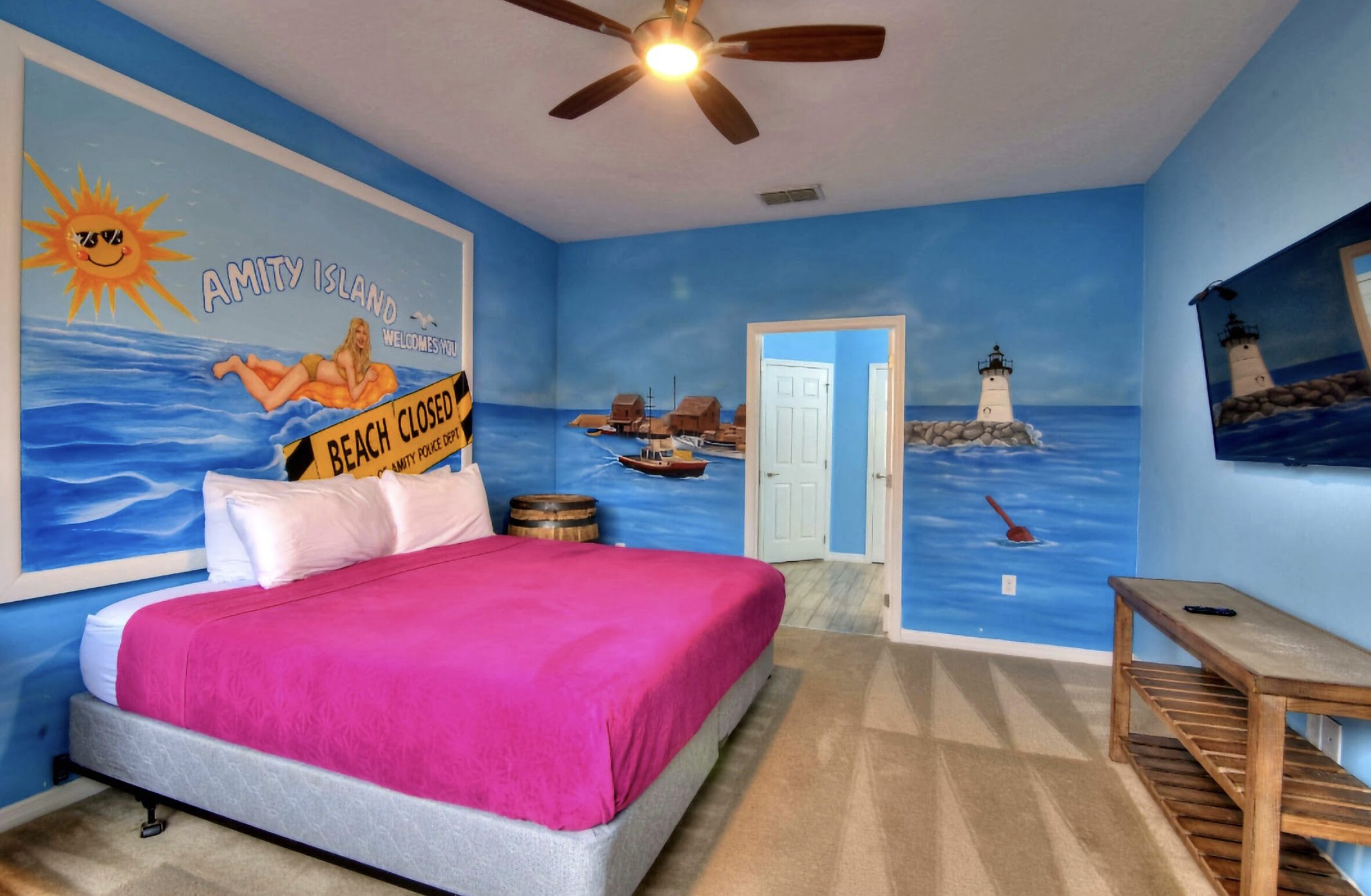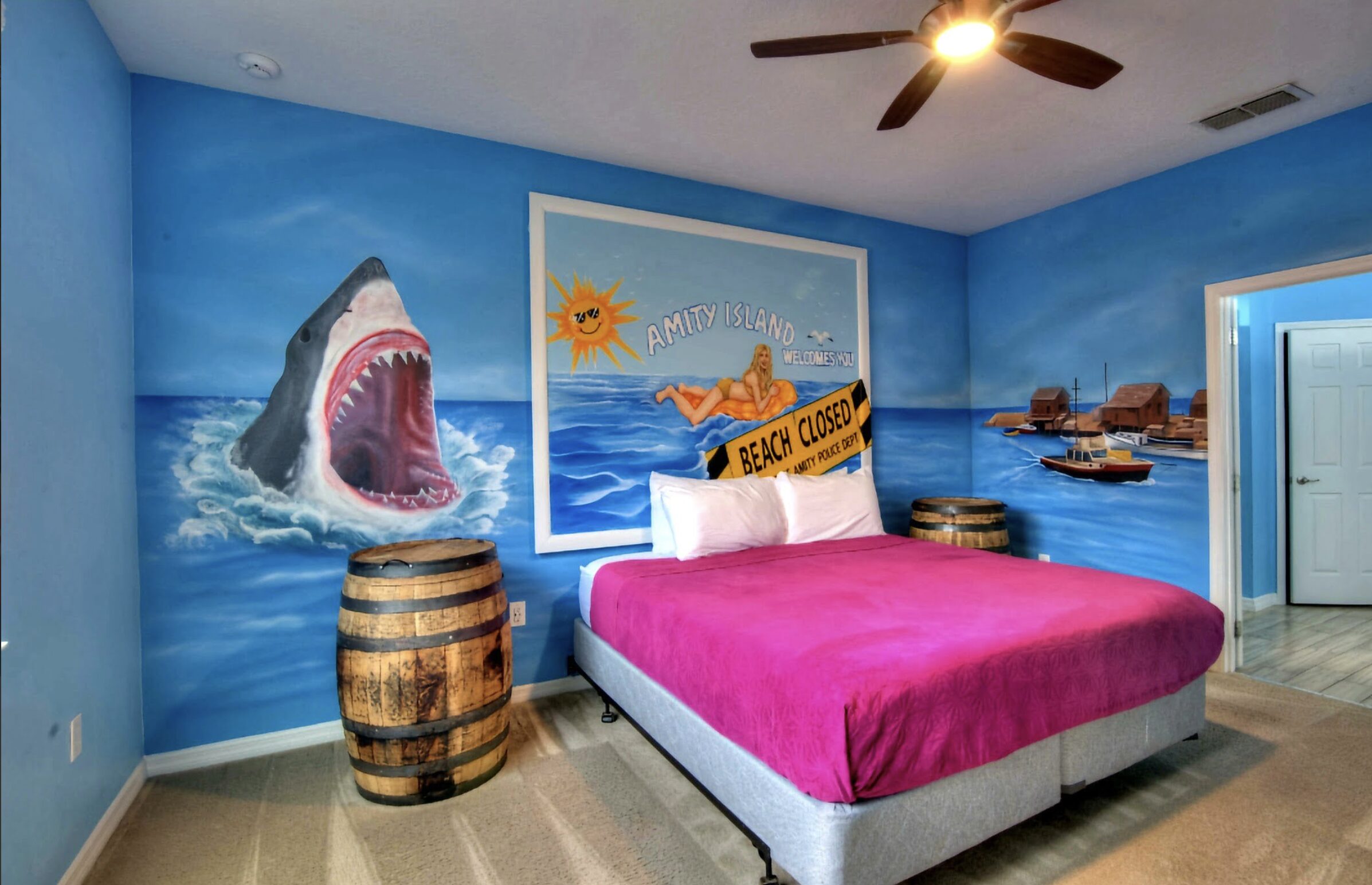 The master bedrooms are the Titanic, Jaws, and First man/space rooms.