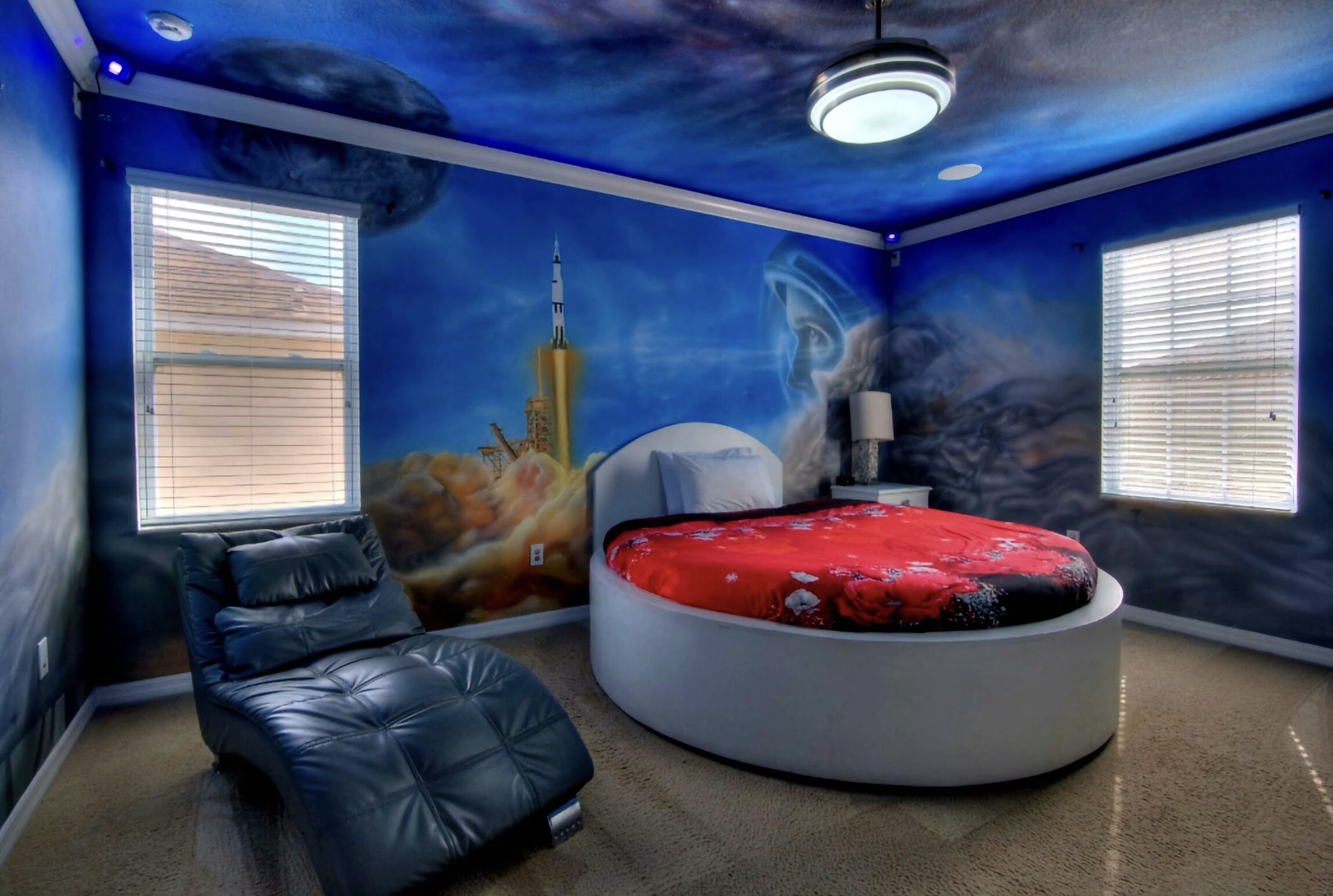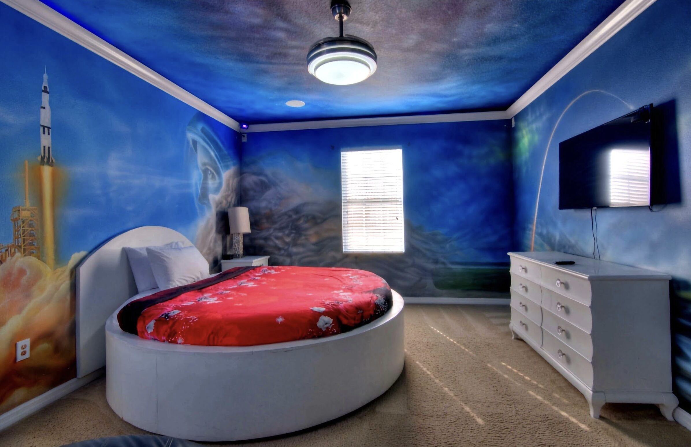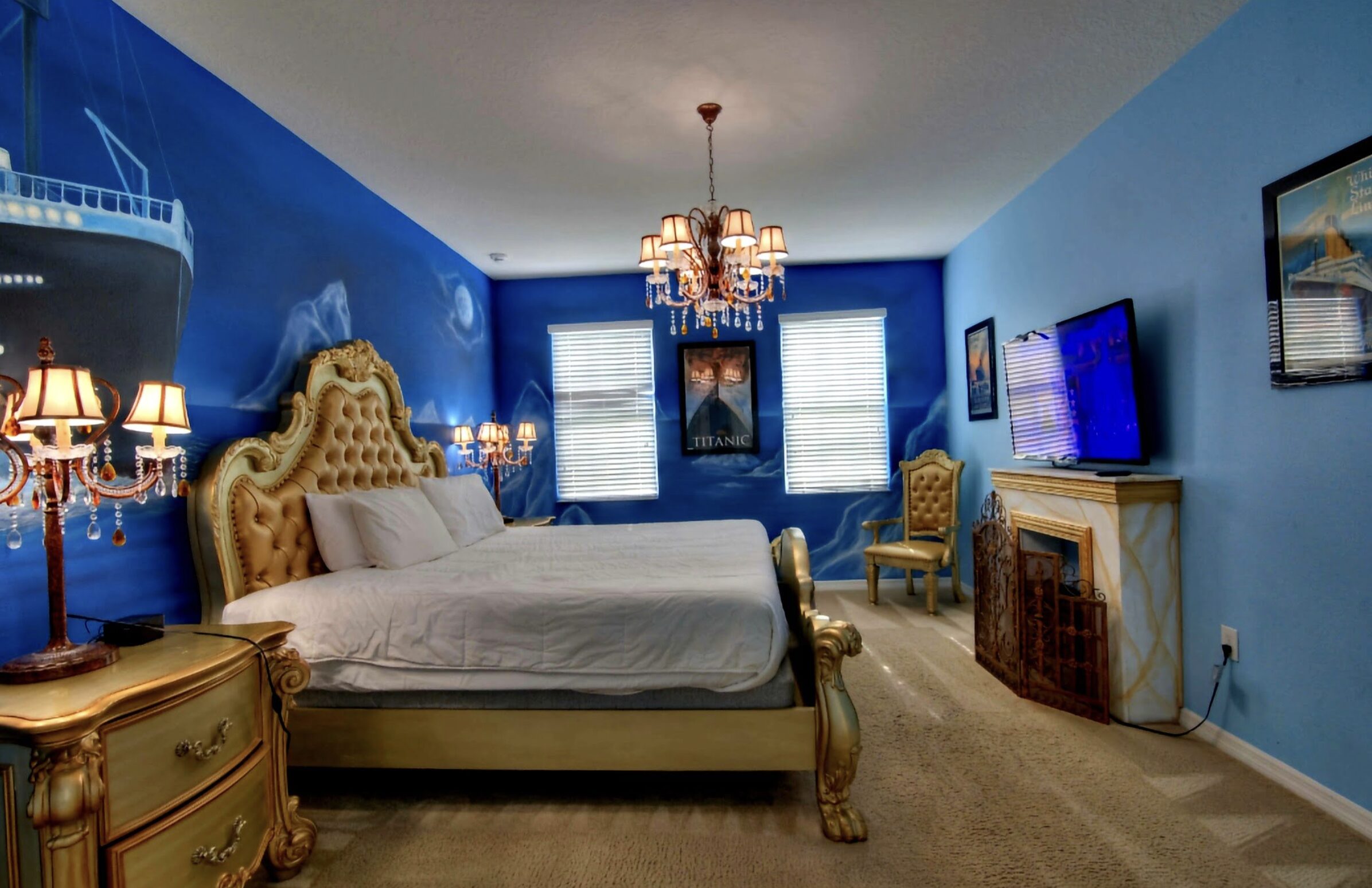 The master bedrooms are the Titanic, Jaws, and First man/space rooms.