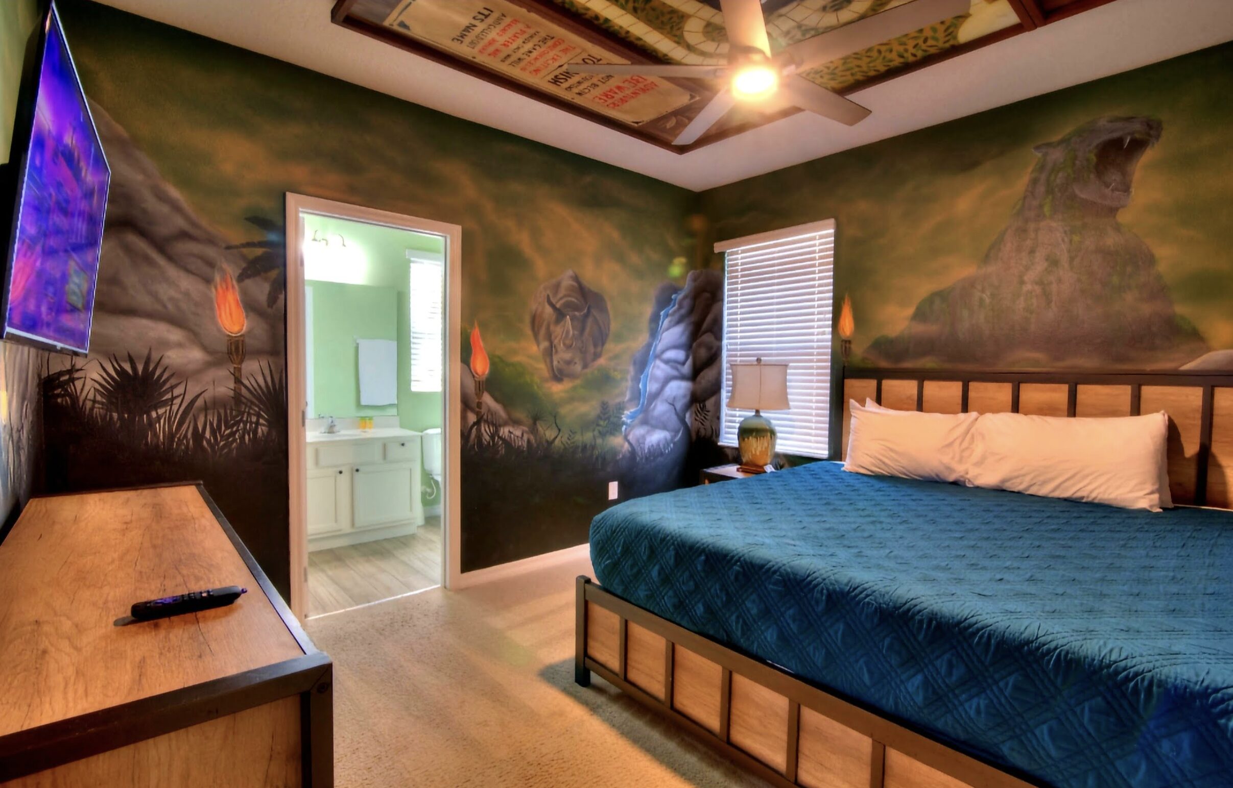 Jumanji bedroom shares a bathroom with Ghostbusters bedroom