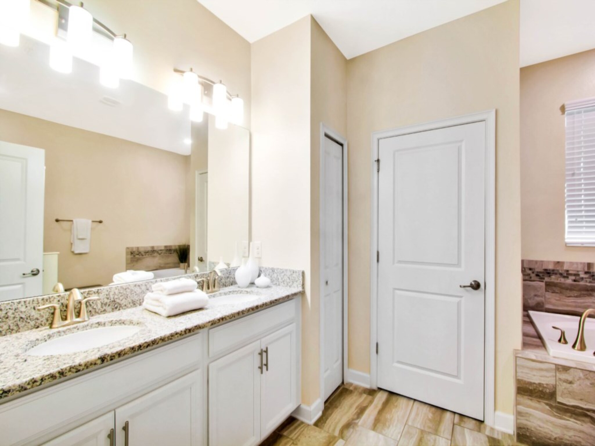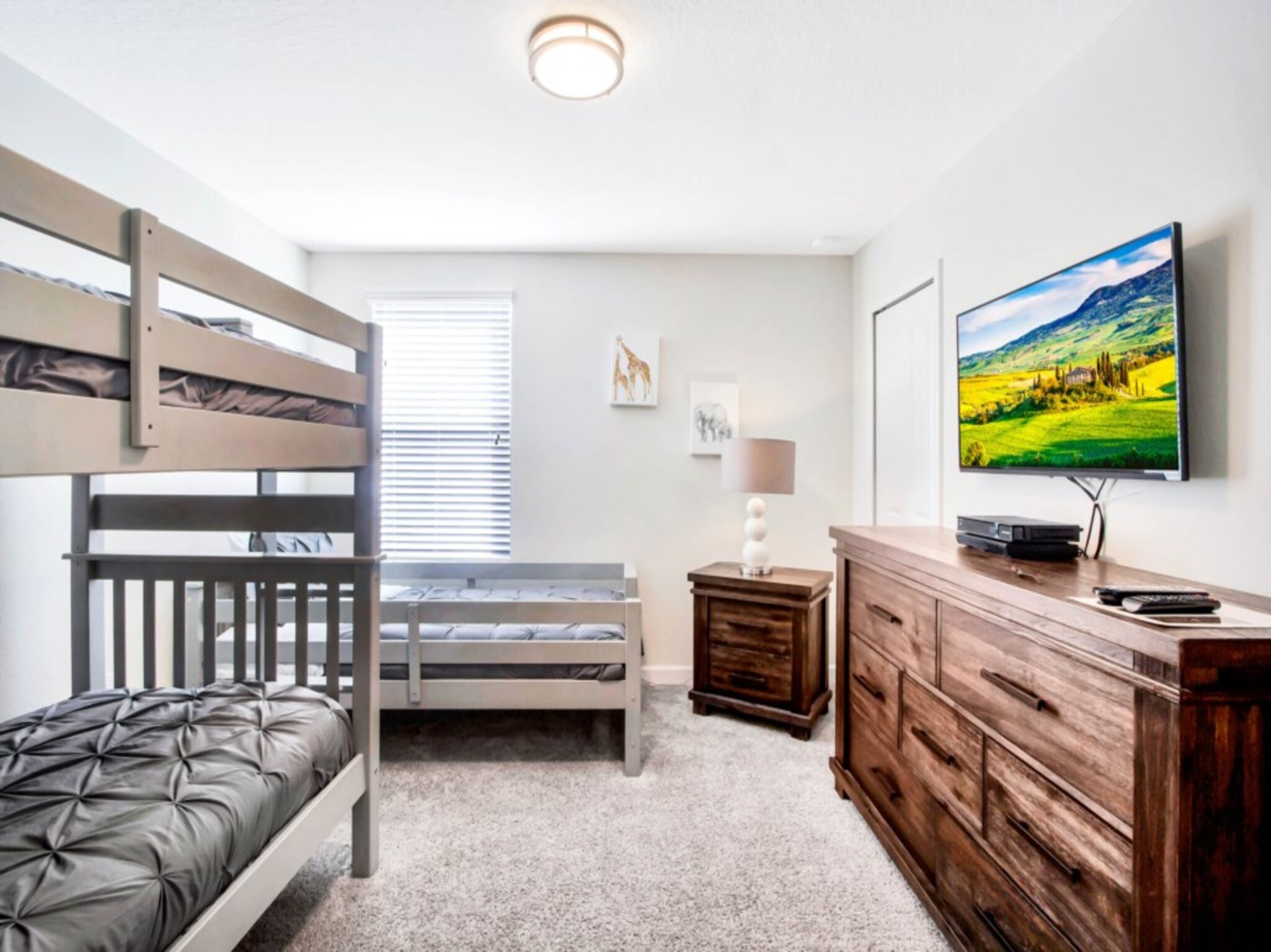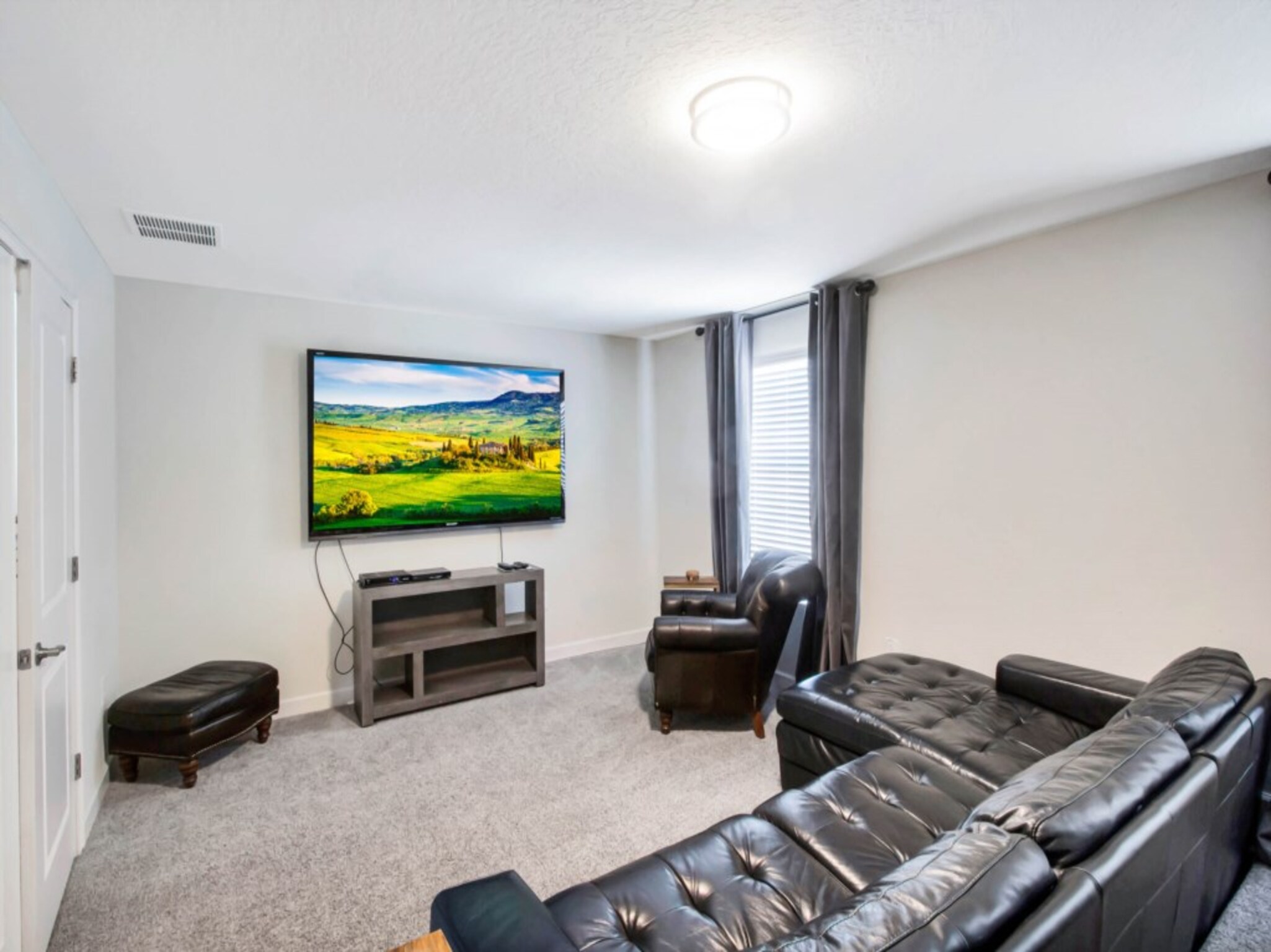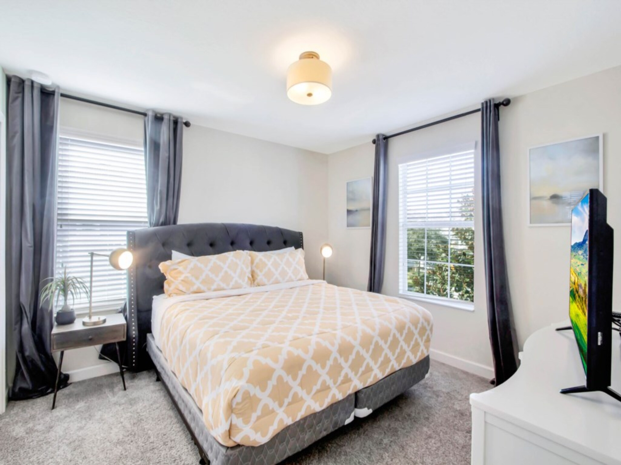 This large home provides plenty of entertainment for you and your guests and comes will full access to this community’s clubhouse. With a huge gym, pool with slides, and a lazy river, everyone will have the time of their lives! There is also an in-unit washer and dryer for your convenience. Book your stay today!