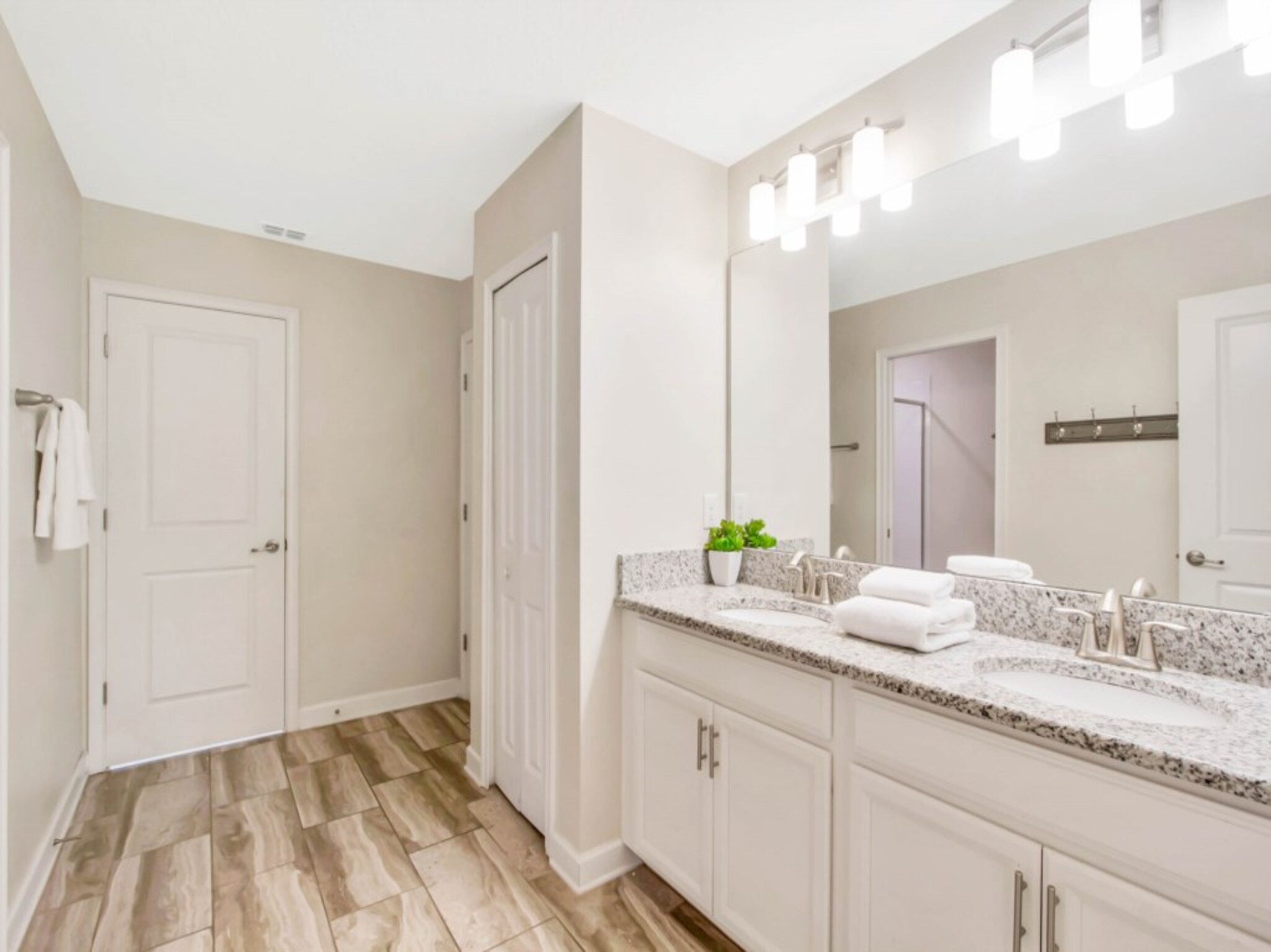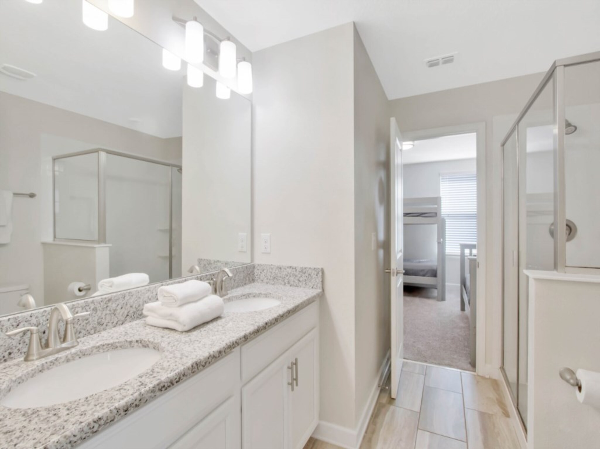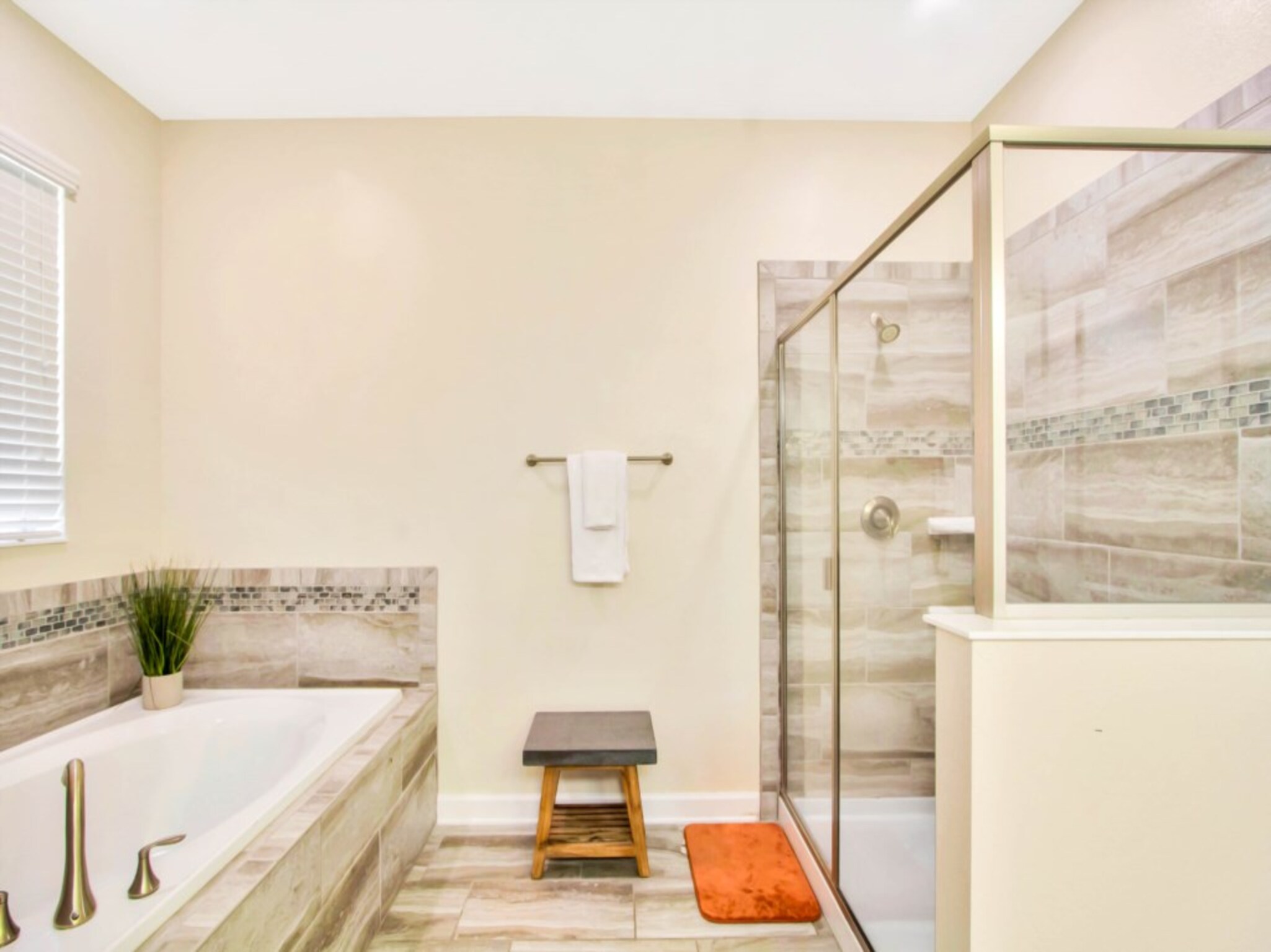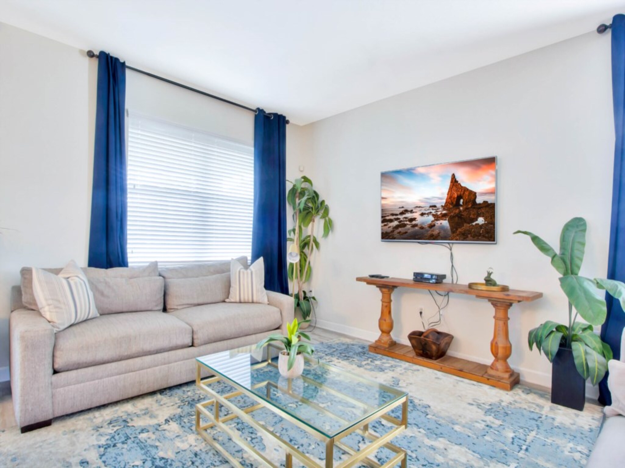 This large home provides plenty of entertainment for you and your guests and comes will full access to this community’s clubhouse. With a huge gym, pool with slides, and a lazy river, everyone will have the time of their lives! There is also an in-unit washer and dryer for your convenience. Book your stay today!