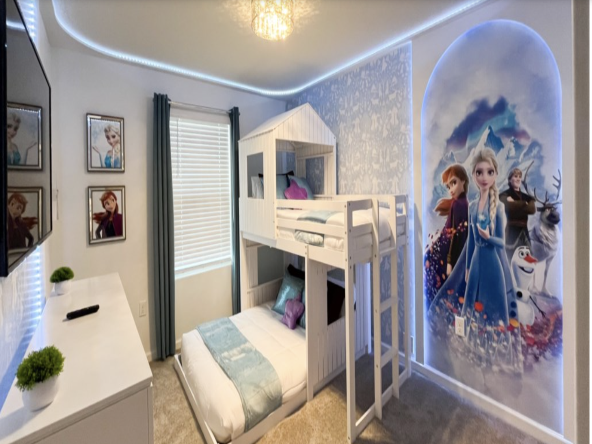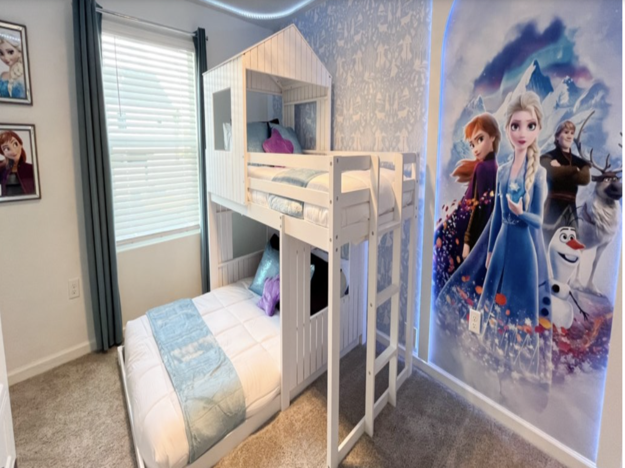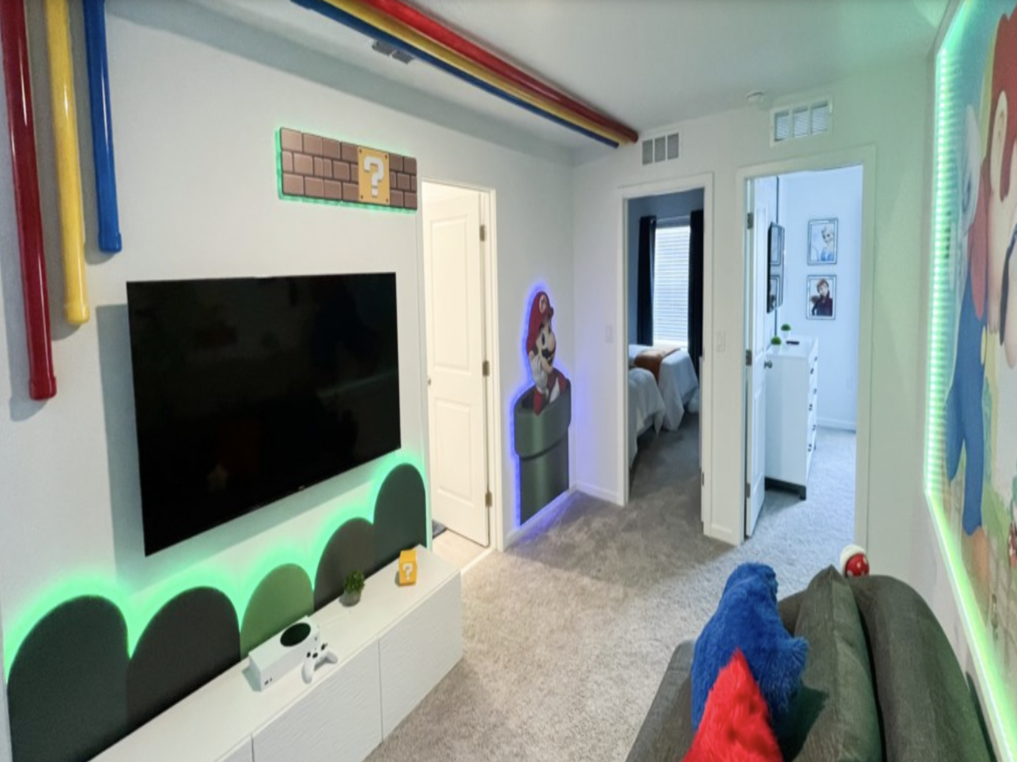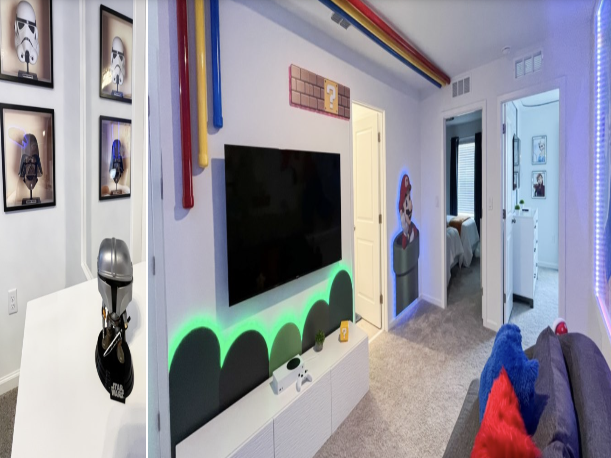 Super Mario Retreat is more than just a place to stay – it’s an experience! This spacious home brings Disney’s most beloved characters to life with fun, themed rooms that both children and adults will love. From the master suite to the playful Mario and Luigi loft, every detail is designed to create a magical atmosphere. Whether you’re relaxing in the modern king suite or exploring the Frozen and Star Wars themed rooms, this home offers the perfect blend of relaxation and excitement.