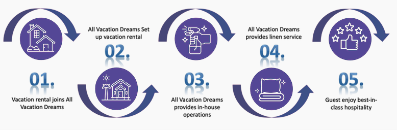 The All Vacation Dreams Linen Program guarantees premium-quality linens and towels for every stay, elevating the guest experience. Fresh, comfortable linens boost guest satisfaction, support glowing reviews, and help attract future bookings while coming at no extra cost to the property owner. Read more here.